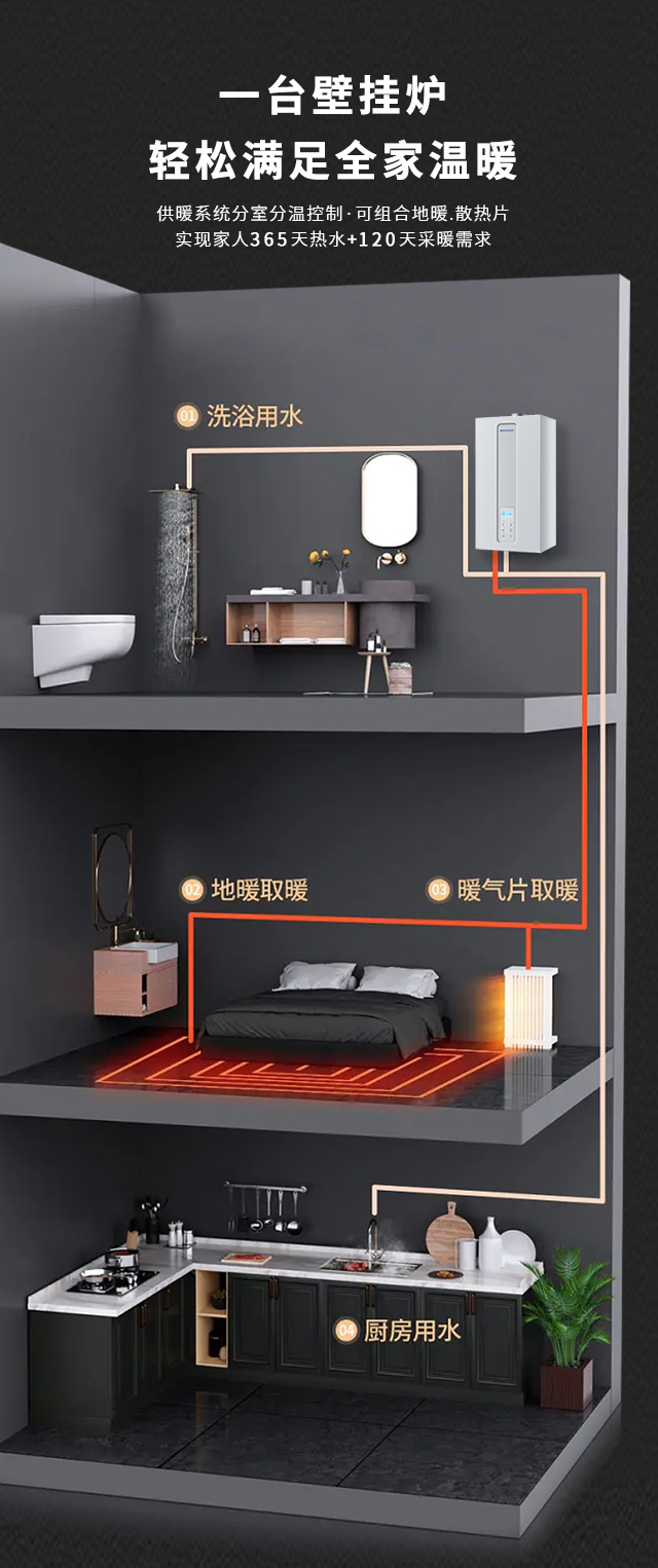 蜂窩式銅質(zhì)板換器熱水交叉對(duì)流,加熱更快更恒溫,精選超靜音歐式鋁風(fēng)機(jī),丹麥格蘭富水泵嗓音小于45db,全銅質(zhì)水路閥體,耐腐蝕性強(qiáng)使用壽命長(zhǎng)。
